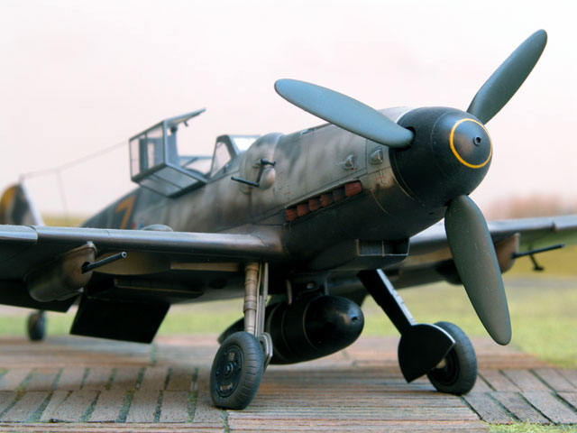 Chris's Bf 109 is presented in a roughly painted night-fighter