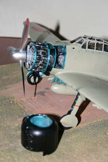 I focused in the Sakae engine, adding some scratch details here and there such as engine flaps. I rebuilt the engine mounts with steel tubes too.