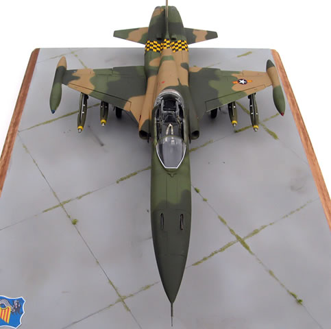 After the kit was assembled, a lot of sanding and filling with Mr. Surfacer 500 were done to get rid of the surgery scars before painting. I used enamel paints from Model Master FS color line and did a little tuning of the shades to match the SEA scheme. The T-O for Vietnam scheme was: FS34079, FS34102, FS30219 for upper, and FS36622 for lower surface.